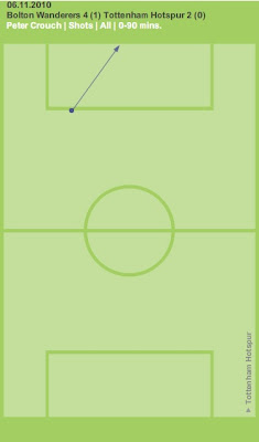 Against Bolton, the only shot he managed in the 90 minutes that he played was an effort scuffed straight at the goalkeeper. Pavlyuchenko had one shot in his 45, scoring a spectacular goal.