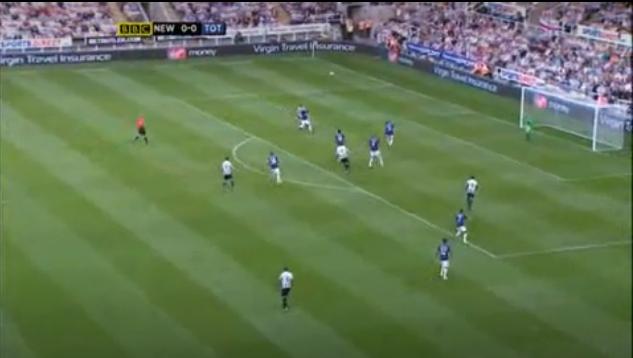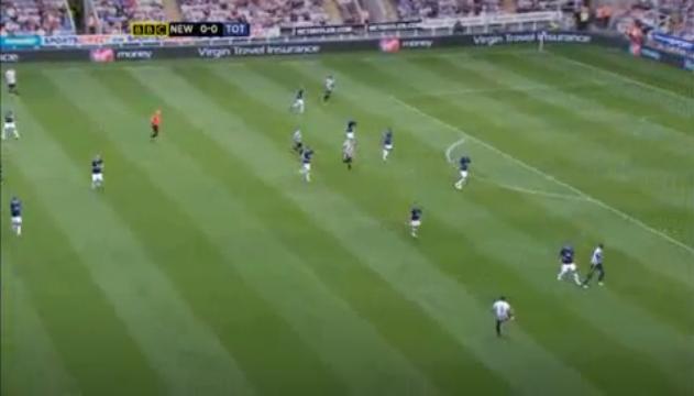 Newcastle have possession in a central area, with Spurs relatively organised.